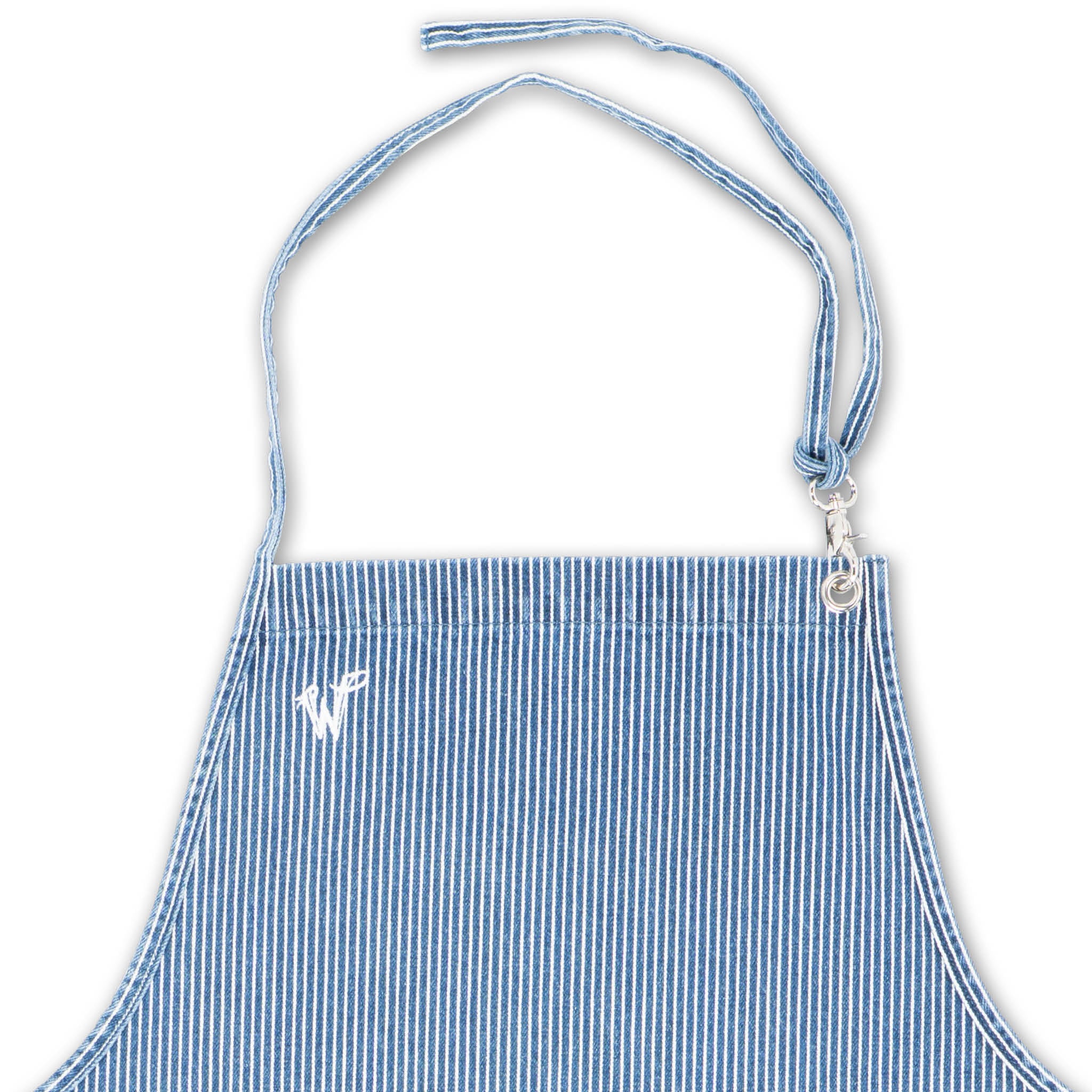 The Striped Wiseguy Cotton Twill Apron is your ultimate companion for your creative cooking escapades and all those 'dirty' shenanigans. Crafted from rugged cotton twill fabric in classic blue and white stripes, this apron is as tough as nails. It features a silver-colored lobster hook connection on the neck strap, and the subtly embroidered 'W' monogram adds that signature Wiseguy Charm. With generously long waistband straps, you'll finally have the perfect opportunity to master those wilderness survival knots you've been itching to learn. When you've got a Wiseguy Apron, you're not just cooking; you're cooking with attitude.